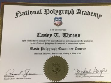 APA certified examiner Graduate of the national polygraph academy 2016.
